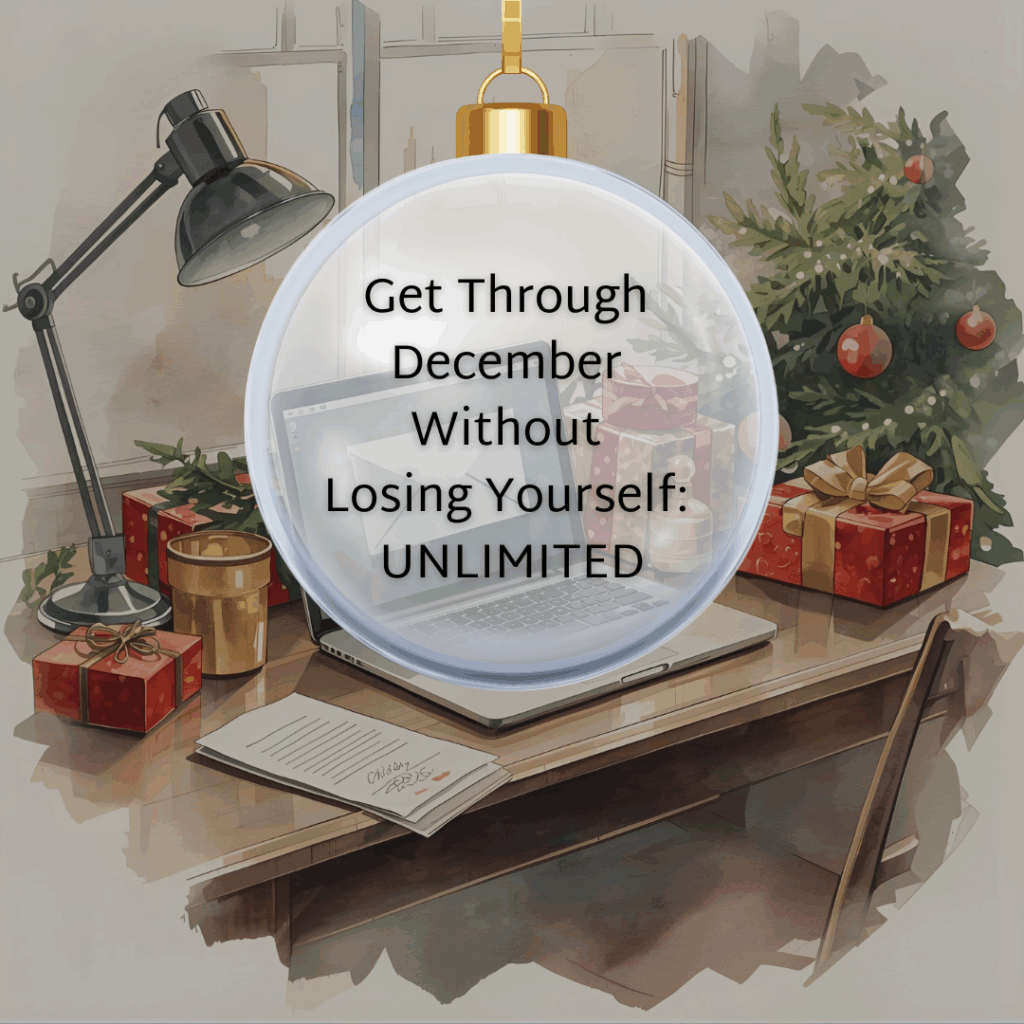 So I’m opening something I haven’t done before. I’m calling it Get Through December Without Losing Yourself: UNLIMITED. A 5-week psychospiritual companion from December 1st through January 4th. (Yes, it’s a long title; yes, it doesn’t even say it all.)