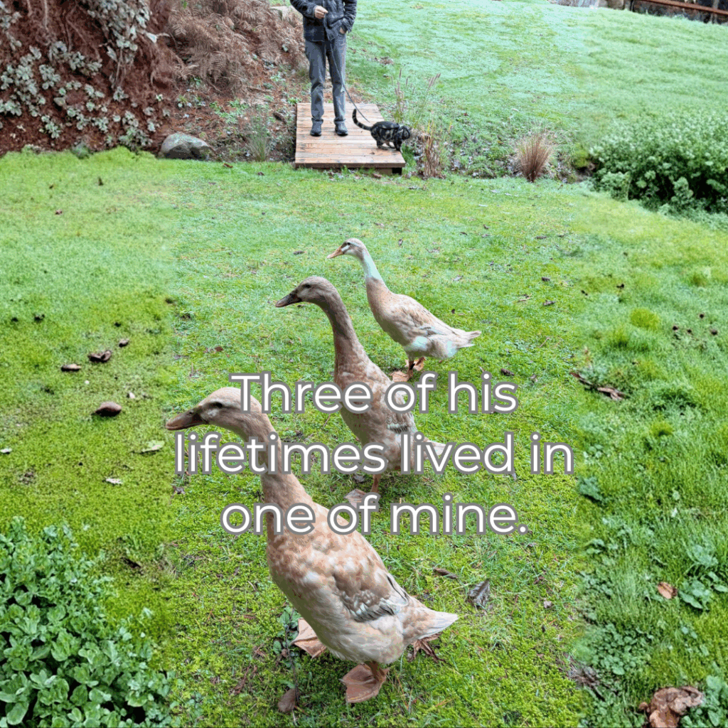 P.S. Oh, and because so many of you asked, here’s a Jack update: He hasn’t even been here a month yet, and it feels like forever, in the best way. Blake takes him out on his harness two or three times a day, and they walk the garden together. Sometimes I’m out with the ducks; sometimes I’m not. Tilly, the quack pack leader, walked right up to him last week in her best I’m not scared of you energy. Jack turned around with a cool I wasn’t interested anyway and wandered off.